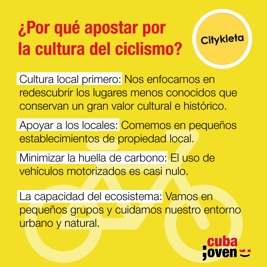 Hoy Citykleta ofrece actividades en bicicleta para el ocio y fomento de cultura ciclista en la capital. “La gente viene a Citykleta para descubrir la ciudad, divertirse, socializar en comunidad y aprender a usar la bici”, indicó su fundador.