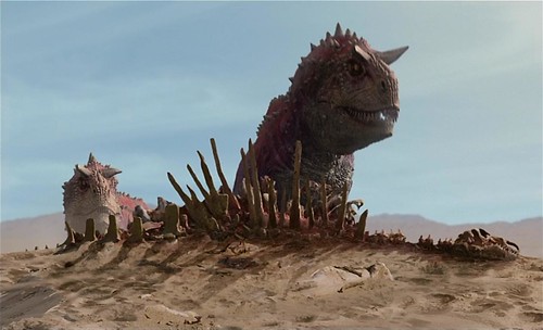 En Dinosaur, definitivamente, los ancianos son dejados en manos de los peligros que acechan a este mundo prehistórico, específicamente, al depredador natural de esta etapa hace 65 mil millones de años, el carnotaurio, quien en su carrera por saciar su hambre termina ahuyentando a los dinosaurios a su alrededor o aniquilando todo a su paso.