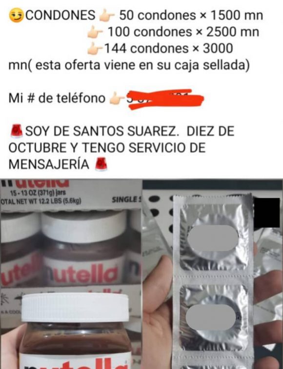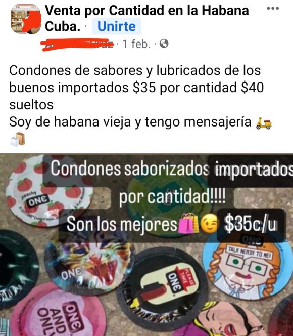 Los grupos de venta en las redes sociales ha sido una variante ante la poca disponibilidad de los métodos anticonceptivos en las farmacias cubanas. Según un sondeo realizado por Cubadebate, en el mercado informal los precios de los condones oscilan entre los 25 y 50 pesos por cada unidad, aunque puedes encontrar ofertas de 50 por 1500, 100 por 2500 y 144 (la caja sellada) por 3000. Los preservativos de sabores cuestan 40 pesos, o 35 por cantidad.