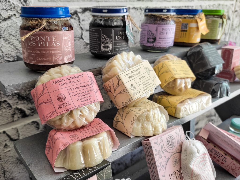 Organizadores, velas aromáticas, mascarillas exfoliantes, bálsamos hidratantes y jabones son algunos de los productos que expende el emprendimiento Ponte las pilas. La idea de comenzar un proyecto que potenciara el reciclaje y el uso de componentes naturales surgió en medio de la pandemia de covid-19.