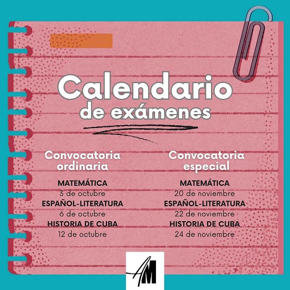 Quienes culminaron su etapa Preuniversitaria y están pendientes a realizar — en el mes de octubre de este año — los exámenes de ingreso a la Educación Superior deben conocer que se mantendrán las tres evaluaciones regulares: Matemática, Español e Historia de Cuba. Igualmente, se conserva la convocatoria especial, en el mes de noviembre, para casos muy justificados que no se presentaron en la ordinaria.