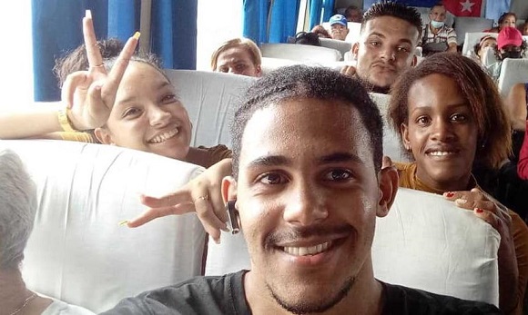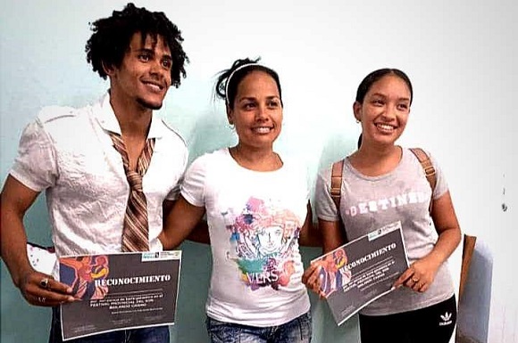 Greter (a la izquierda) y Daniel (en el centro) se aventuran junto a otros estudiantes para el evento provincial. Foto: Tomada de Escambray.