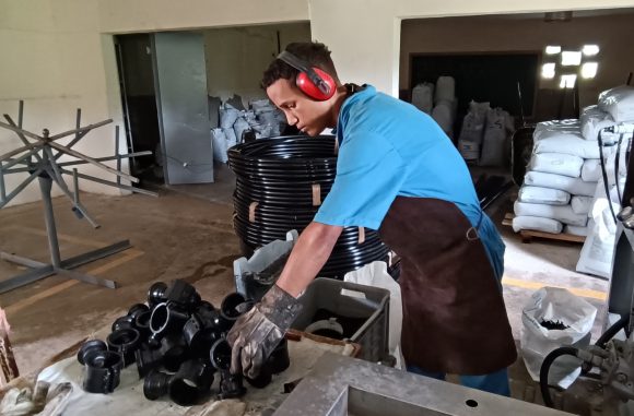 Aunque su encargo social son los sistemas de riego, también fabrican piezas hidráulicas para 4 000 viviendas al mes (codos, tes, unión, tuberías de 3/4, de pulgada, de media, de plástico P100 y P80), explica a Cuba Joven José Emilio Parra, director de producción de JC Max.
