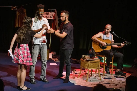 Risas cuando Anamarys busca en el público un reloj, un bolso, unas gafas de sol, y Roly Ávalos, con los ojos vendados, recita décimas que adivinan el objeto entre sus manos. Silencio cuando Alex deambula por el escenario leyendo poemas del libro de su padre. Aplausos al final, cuando solo queda la frase: “El mundo se ha llenado de impostores y el que no arriesgue su opinión no juega”.