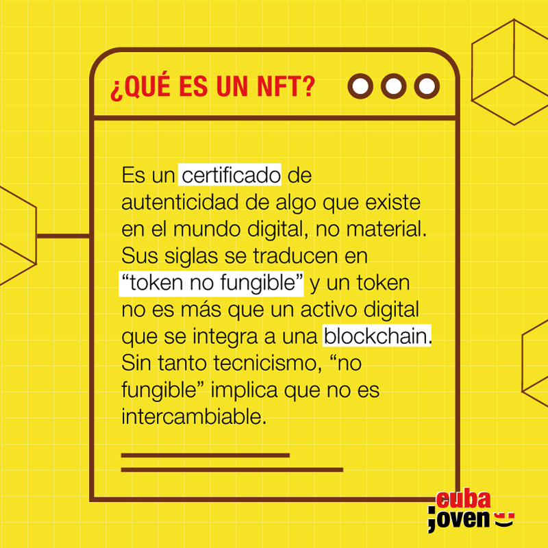 Sencillo, dejando fuera la moda, es, esencialmente, un certificado de autenticidad de algo que existe en el mundo digital, no material. Pero ahora viene lo bueno. Sus siglas se traducen en “token no fungible” y un token no es más que un activo digital que se integra a una blockchain. Sin tanto tecnicismo, “no fungible” implica que no es intercambiable.