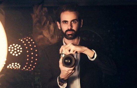 El fotógrafo, cámara en mano, se acerca a los transeúntes. Uno de ellos sonríe, parece reconocerlo. Su acompañante se detiene, dubitativa.